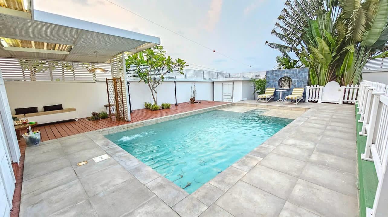 • Une piscine clôturée 🏊‍♂️ avec espace détente